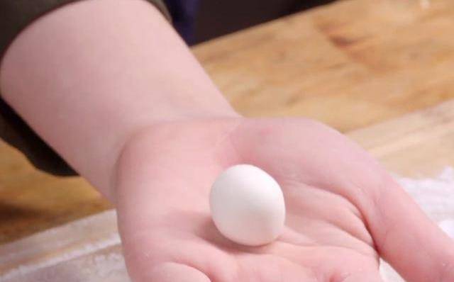 當然瞭,為瞭凸顯今天這款美味的獨特性,我們可以像下面這張圖一樣,把湯圓按扁備用。