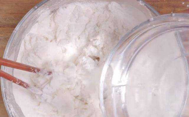 第四步:把準備好的糯米粉倒入一個碗中,一半用冷水和面,一半用熱水和面,然後均勻攪拌揉捏成團,然後等分成20g左右的小劑子,分別搓成湯圓狀。