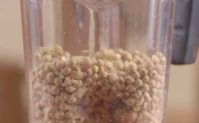 第二步:準備一個破壁機,把炒熟的黃豆和花生倒入其中,打制成均勻融合的粉末狀倒出備用。