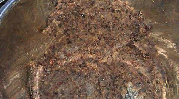 第三步紅小豆240克,加兩倍於豆子的水高壓鍋煮至豆子開花,加150克砂糖用木鏟壓碎。