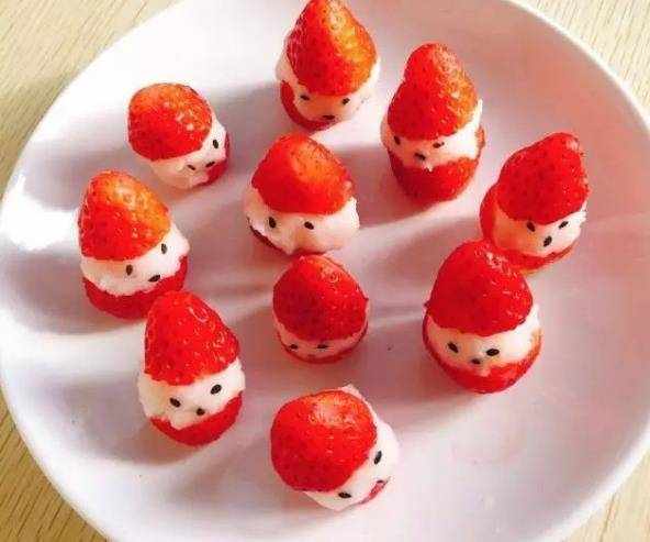 每年在平安夜都會在女兒的床頭放個她心儀的禮物,第二天早上,女兒以為是聖誕老人送來的,特別地開心。今年除瞭準備禮物外,我還用草莓和山藥做瞭個聖誕老人,女兒看到的一瞬間,高興地跳起來瞭,要求自己一定要動手做。