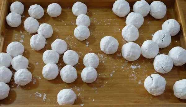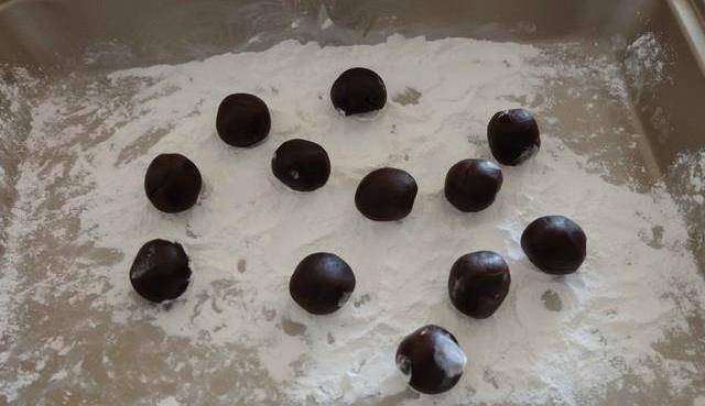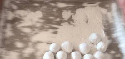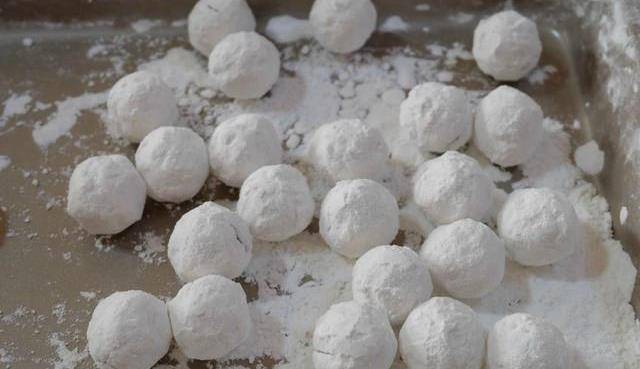 步驟4:把濕漉漉的豆沙球再放到糯米粉裡,繼續晃動,繼續裹上更多的糯米粉;