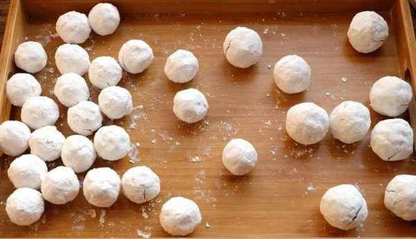 步驟2:把豆沙餡取出來,搓成小圓球,每個圓球約5g左右;烤盤裡放上少量糯米粉,把豆沙餡球打濕放到糯米粉裡;