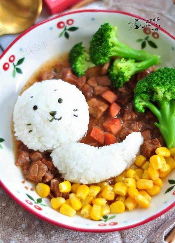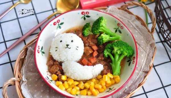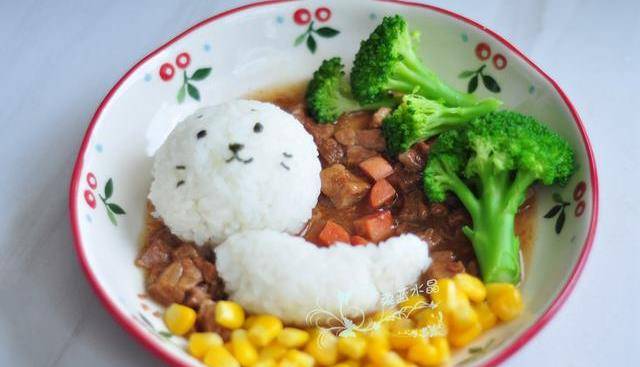 在我看來,做飯挺簡單的,也並不麻煩。買瞭紅燒牛肉料理包,這樣就省去瞭燉肉的時間,再搭配一些蔬菜和米飯,就是一頓看起來很豐盛的午餐瞭。把米飯再捏個可愛的卡通造型,不禁讓人眼前一亮,孩子也會迫不及待想開飯瞭。