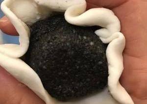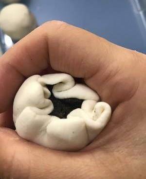 把餡分成團,大小差不多就行,稍揉圓
