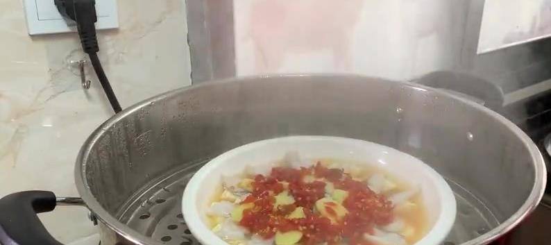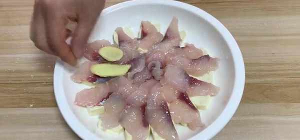 剩餘的就放在碗中間,再擺上薑片,加入剁辣椒。蒸鍋裡的水燒開,放入豆腐魚塊,蓋上鍋蓋,大火蒸6分鐘,6分鐘後關火,再把蒸出來的湯汁倒掉,淋入蒸魚豉油,撒上蔥花。看起來很有食欲的豆腐魚片就做好瞭,喜歡的朋友可以試一下。