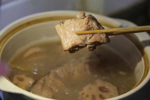 蓮藕燉排骨是需要小火慢燉才夠味兒,口感也才是最好的。我在做這道菜的時候也絕不會吝嗇自己的時間,我一直篤定的認為需要用時間來成就的菜就一定不要指望在短時間內速成它。比如說需要小火細燉就絕對不能用大火短時來完成。雖然用大火催熟的飯菜也是成熟的,也能吃。但是那味道和口感絕對不會是用心去慢慢制作它來得美味,與其那樣不如不做,不如不吃,如果真的時間緊促,那就不如幹脆就做些簡單而且用時短的飯菜吃著舒服又順心。生活不能湊合,吃飯也是一樣。人生在世,無非“吃喝”二字。將生活嚼得有滋有味,把日子過得活色生香,往往靠的不隻是嘴巴,還要有一顆浸透人間煙火的心。