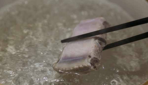 1、 排骨清洗幹凈後,在清水中再浸泡半小時去除血水,隨後放在涼水鍋中焯燙一下,待鍋中的水沸騰後再撈到另一個燒開水的砂鍋中。