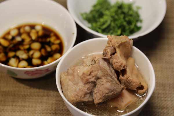材料:粉藕、排骨、料酒、蔥、薑、鹽、紫蘇葉 蘸料:蒜、生抽、蒸魚豉油、醋、涼白開水、香油、香菜
