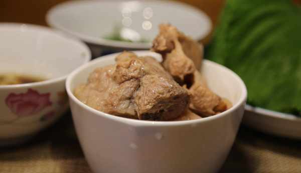【小薇的溫馨小提示】蓮藕和排骨同時放到砂鍋裡燉煮更軟糯粉潤。用紫蘇葉包裹著蘸好料汁的肉很美味,推薦這種吃法。