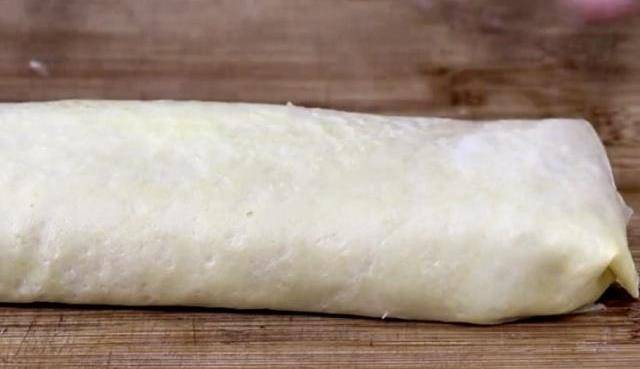 第三步:在蛋皮上抹一層淀粉水,再放上適量的肉餡,把肉餡整理成長方形,放在面皮的三分之一處,然後再把面皮卷起來。