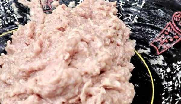 第一步:準備一塊豬肉剁成小塊,放在絞肉機裡絞成肉餡,把肉餡放在碗中,加上蔥薑末、料酒、胡椒粉、少量的清水、一個蛋清攪拌均勻,最好是朝一個方向攪拌,最後再加上適量的紅薯淀粉攪拌均勻(500克肉餡放100克淀粉)。