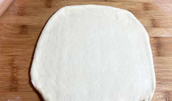 第八步:取一個劑子用擀麵杖邊擀邊排出氣泡,這樣不會破壞麵團的筋性,擀成大面片,厚度大約一釐米左右。