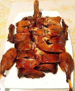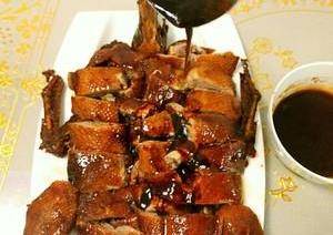 13、用勺子舀湯汁澆到切好的鴨子上就可以食用瞭。
