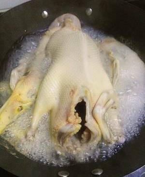 2、鍋內放入冷水,再放入鴨子,等水開後出現大量浮沫時關火,將鴨子沖洗幹凈。