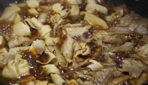 大概燉半小時後放入豆腐結和焯好的筍衣翻炒均勻後繼續小火慢慢燉煮。