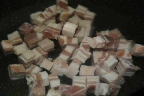 五花肉洗凈後切小塊放入清水中煮至水沸騰後撈出,蔥切蔥段備用。