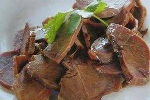 4.鹵好的豬肺給它切成薄片,炒鍋燒熱,把準備好的豬肺放進去,用大火煸炒出裡面多餘的水分。炒幹之後盛出備用。炒鍋燒熱放入食用油。