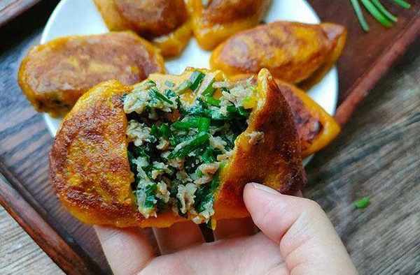 【韭菜肉餡南瓜餅】