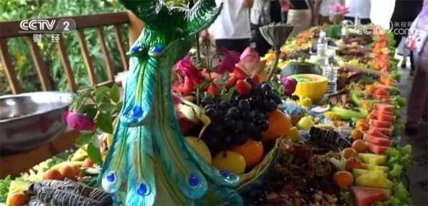 這樣一桌豐盛的美食,需要數十人齊心協力才能制作完成。食客們可以根據自己的喜好、口味隨意搭配,盡情品嘗傣族特色美味。