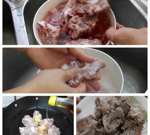 這邊我們還提前浸泡瞭有20塊錢的豬頸骨,先把它的血水給泡出來,現在把它清洗一下,豬骨頭先給它浸泡過,把血水泡出來,包出來的湯會比較清澈的。煲湯我也很喜歡,用這種豬頸骨煲出來的湯非常的香。洗好後我們還要把它拿去焯一下水,冷水下鍋。加幾塊薑片,再倒點料酒進去,大火燒開,給他煮上三分鐘。好,我們的豬頸骨水開煮瞭有三分鐘呢,現在把它撈出來給沖洗一下。用流動水把表面的薄膜給沖掉就可以瞭,洗凈後拿去下鍋