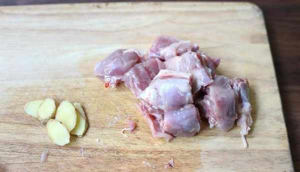 3.生薑切片,水鴨皮和脂肪盡量去掉,避免過於油膩。把水鴨肉切成塊。