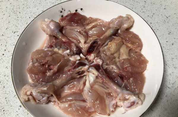 第一步:將雞腿泡進水裡解凍,解凍至雞腿變軟後用刀將雞腿肉和雞骨棒剔分開一點,厚一點肉的地方用刀劃一下,這樣方便入味。