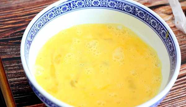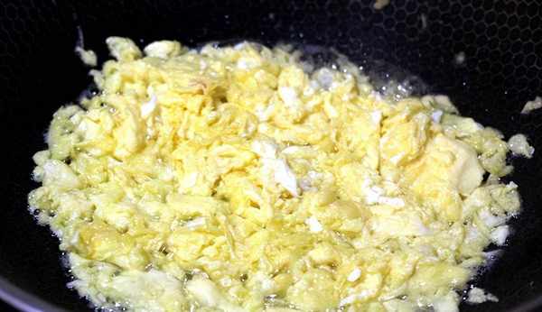 2、鍋上火,倒上色拉油燒三成熱,倒入雞蛋攪成碎末備用。