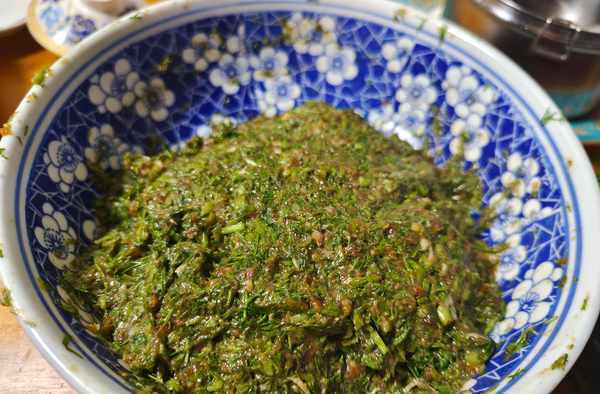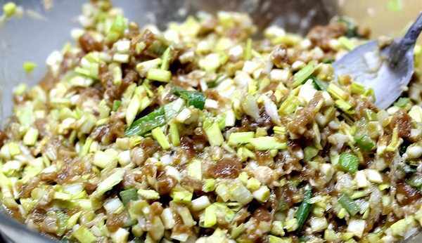 1、茴香切碎,豬肉絞成肉餡,加冷雞湯(分次加),順一個方向攪上勁,然後再加鹽、醬油、蔥、薑末、豆油、味精、香油,最後加菜攪拌成餡。制餡加水時要邊加邊攪,不要一次將水全部加入,防止餡傷水不黏稠。