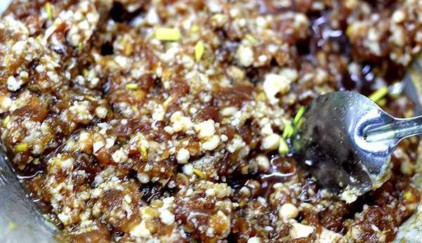 1.將牛肉洗凈,瀝幹表面水分,剁成茸泥狀,把牛肉餡放入盆中,加入薑米、五香粉、雞湯,雞蛋、鹽、生抽、生粉用力順時針方向攪拌,待將所備調料汁湯全部攪拌進去後,再加入30克花生油拌均勻。