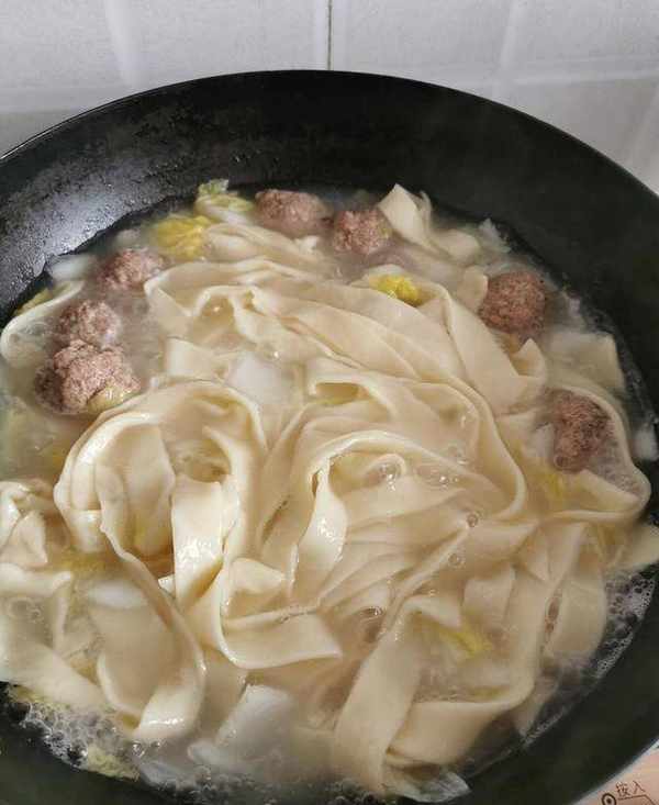 夏天,有人說太熱不適合吃面條。其實我覺得夏天就應該吃一碗熱騰騰的湯面,面湯可以養胃促食欲,天熱的時候吃上一碗,出一身的汗,瞬間身體就非常舒服。做這個肉丸湯手工寬面,隻需註意這兩點,你也可以做的很好吃!第一點,揉面要偏硬,有勁道,多揉幾遍。第二點,夏天不適合吃太油膩的湯,所以煮面可以用清淡一些的湯,如果味道不夠,就用生抽或者味極鮮和醋調味即可。大傢學會瞭嗎?趕快試一下吧!