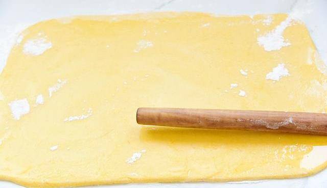 5、取出來再次揉均勻,接著搟成長方形的面皮。