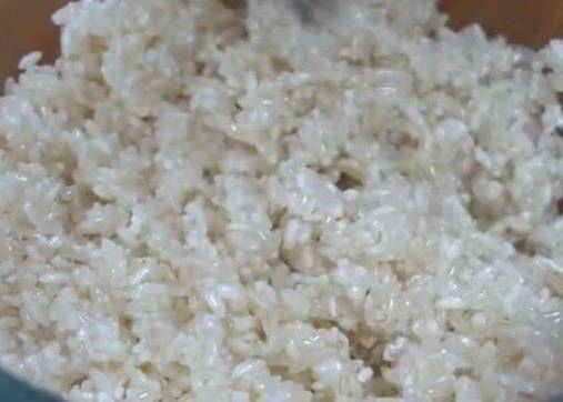 大米先淘洗幹凈,提前用水泡好。泡好後撈出,倒入適量油,再加一勺鹽,把它攪拌均勻。