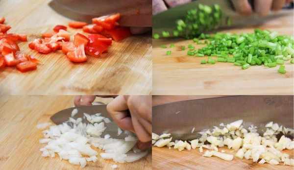 1.洋蔥切碎,蒜切碎,彩椒切丁,巴沙魚切塊,香芹切末 ,備用
