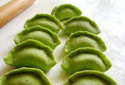 面團醒好以後搓成長條,切成大小相等的小劑子,用搟面杖搟成餃子皮,包上我們準備好的餡,捏進口,這樣一個個綠色的餃子就包好瞭,小孩子是最喜歡吃這種餃子瞭,如果傢裡的孩子挑食,不好好吃飯,就可以這樣包餃子讓孩子吃,保證孩子能吃1大碗,看著就很有食欲。你喜歡吃這樣的餃子嗎