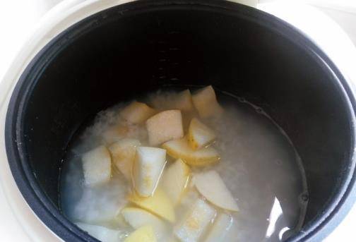 4,把切好的梨放入鍋中,蓋上蓋子壓十分鐘。