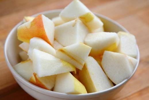 2,將雪梨清洗幹凈,去皮去核,切成小塊。