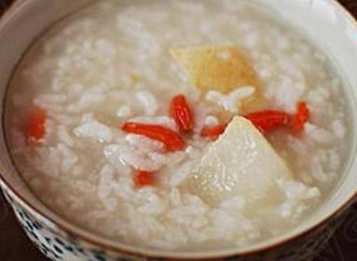 這樣一鍋好吃的枸杞雪梨粥就煮好瞭,雪梨有止咳化痰,潤肺下火的功效,而枸杞可以養肝補虛,清熱明目。如此好的功效,所以要經常煮給傢人吃哦,提高免疫力,預防感冒。這裡需要註意的就是米淘好後先放水再放梨,免得不好掌握水量,還有枸杞不要泡得太久也不要煮,不然就沒有味道瞭。