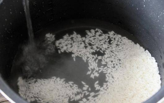3,把糯米和大米淘幹凈放入鍋中,加入清水。