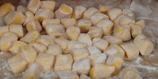2、碗中放入50克面粉,倒入開水先將面粉燙一下,接下來將面粉攪拌成疙瘩狀,然後下手將疙瘩整理揉成面團,揉圓後放一邊待用。南瓜蒸熟後取出,然後將南瓜片倒入大碗中,加入十克白糖先攪拌一會,將白糖攪拌至融化,接下來再加入100克糯米粉攪拌一會,最後將揉好面團放入碗中,將南瓜和面團整理揉勻。糯米粉中含有的蛋白質、脂肪、糖、維生素等,具有很高的營養價值。使用後對食欲不振有良好療效,而且糯米粉還可促進消化,還有這一定的鎮靜作用,可以有效緩解疲勞癥狀。