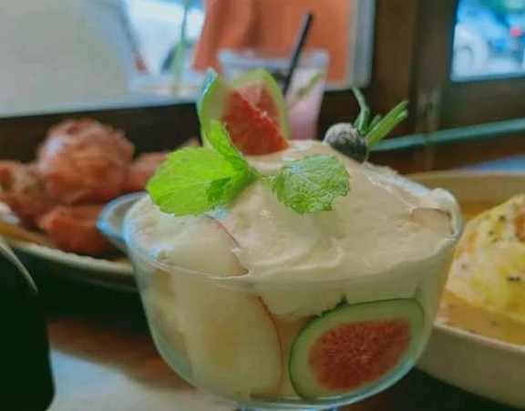 當季水果威風杯,這個和當季水果松餅一樣,用時令水果,做出來就特別好看,配上奶油蛋糕,甜而不膩~