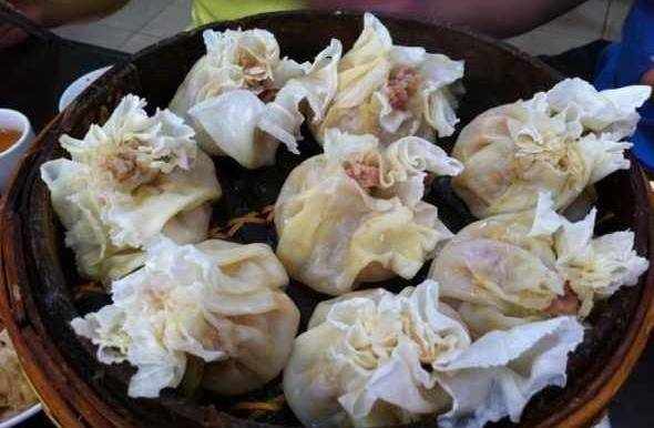 最後,包餡熟制。在每片面皮的中間放入陷心(40克左右),捏成白菜形的燒麥坯。入籠上沸水鍋,旺火蒸約3分鐘,揭開籠蓋,灑上少許冷水與燒麥上,特別是有白點及有淀粉處必須灑上,再蓋蒸籠約3分鐘即成。
