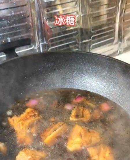5.加入開水沒過排骨,加入適量冰糖,小火燉30分鐘。
