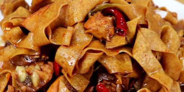 【製作食材】千張,雞肉,小葱,生薑,料酒,食用油,幹辣椒,花椒,香葉,八角,桂皮,豆瓣醬,胡椒粉,食用鹽,醬油,冰糖