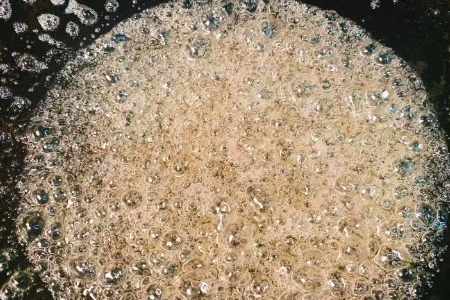 第二步:將冰糖、白砂糖、冷水放入到鍋中,大火將所有的糖都煮融化後,然後改中火,直到鍋中出現如下圖所示的魚眼泡泡即可。