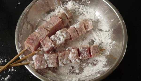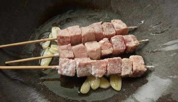 把照燒汁淋在煎熟的牛肉串上即可食用