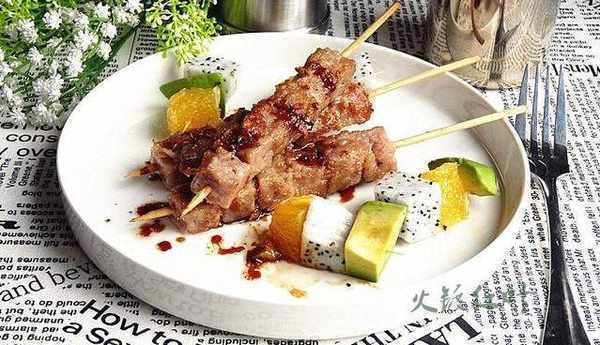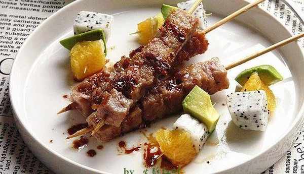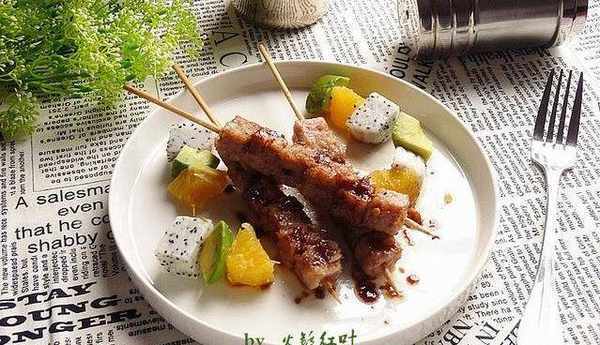 照燒QQ牛肉串是一個偷懶的做法,因我買瞭包QQ牛肉粒,這種方方正正的牛肉小塊,做串串正好,簡單的煎一下,煮個照燒汁淋上一下就可以瞭,吃時配點也是做成串串狀水果一起吃,去膩清爽,水果配肉類是個很好的吃法,有時候做好多人都會想食物這樣子配好不好的問題,我是很少去想的,偶爾把一些食材碰撞一下,會產生意想不到的美味