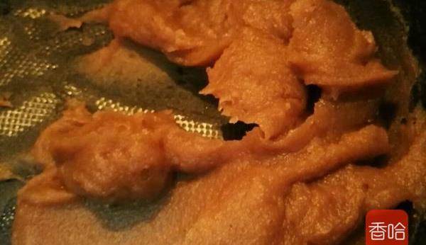10.都擠好後開小火慢慢炒,期間要不停翻炒,以免糊鍋