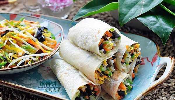 炒好放在春餅上,卷起成卷就可以開吃瞭,豆芽脆甜,雞蛋香,餅柔軟又勁道,很好吃。