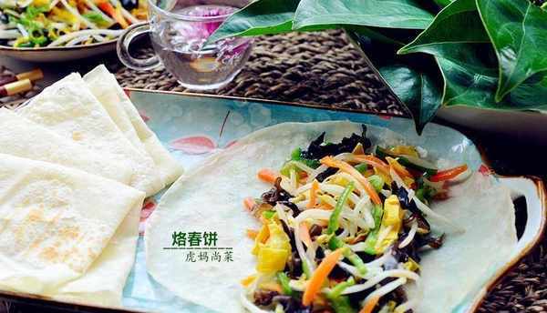 春餅做好瞭,還要做與之搭配的合菜,最好樣多一點,各種顏色的蔬菜搭配著炒一盤,也代表著迎接春天的五彩繽紛,又有豐收之意。